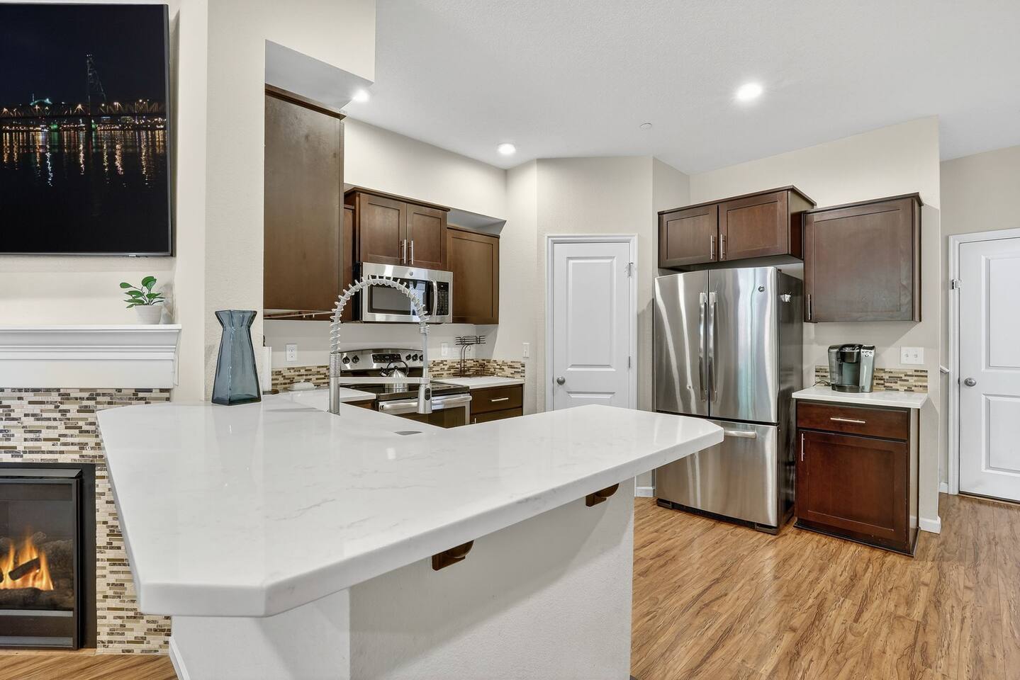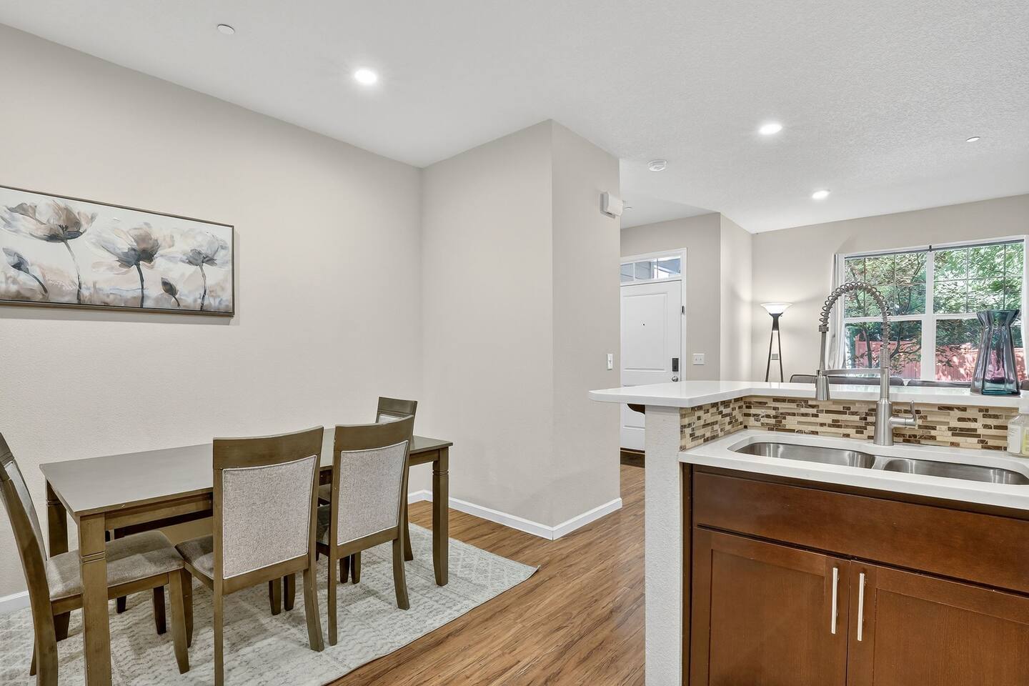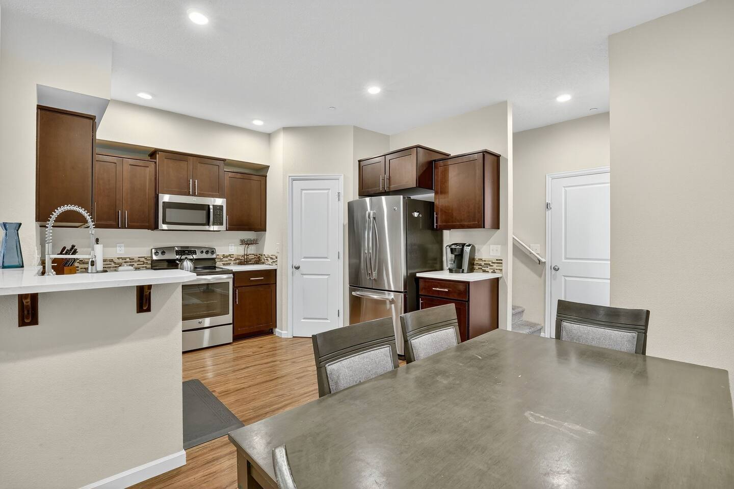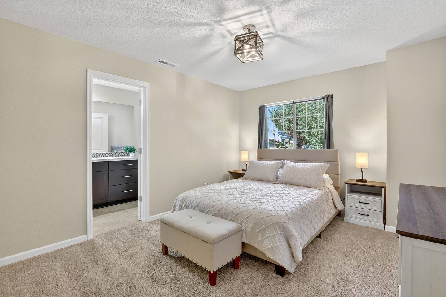 This comfy Happy Valley home features two en suite bedrooms, offering privacy for roommates, couples, or colleagues. The layout also works well for families, with space for kids to share a room. You’ll be in a very safe neighborhood, with garage parking, easy self check in, and a simple turnkey setup for whatever your travel needs may be.