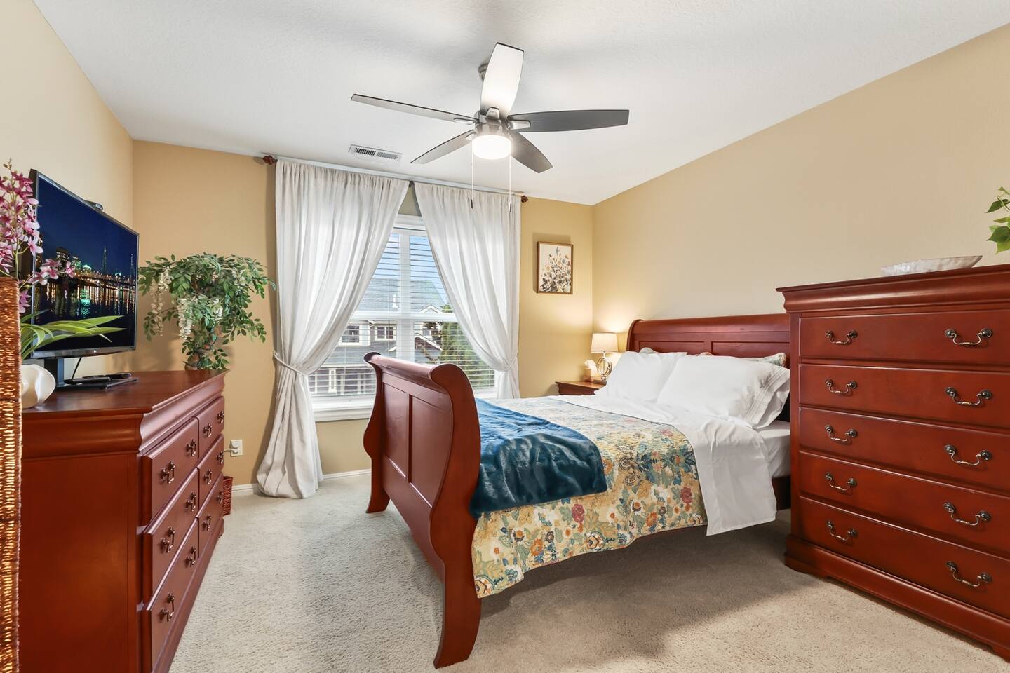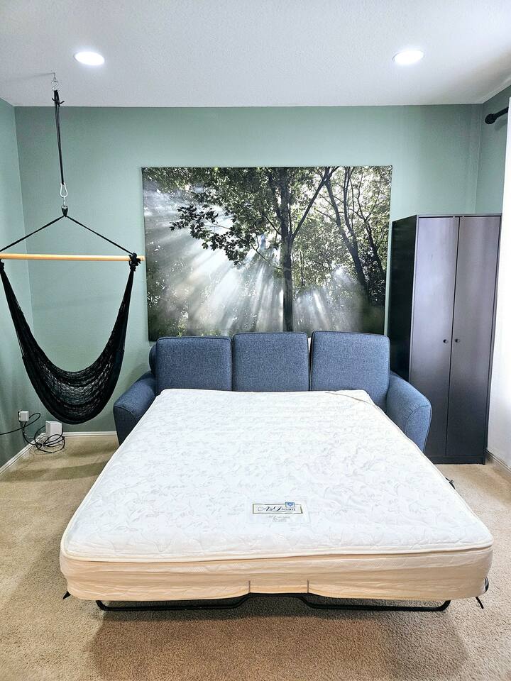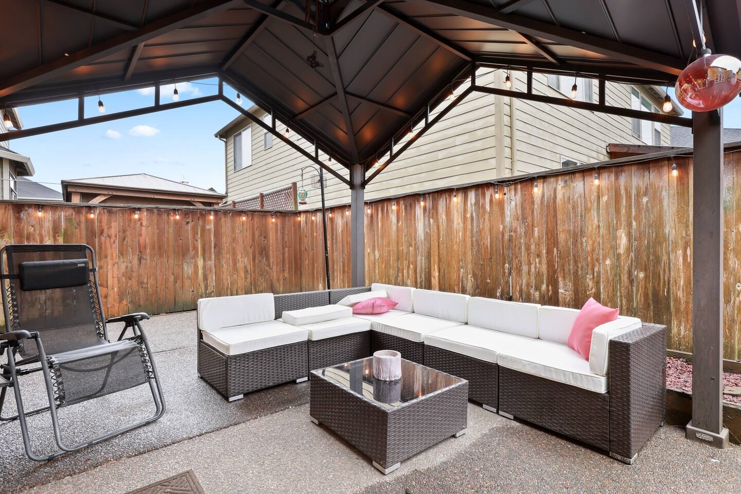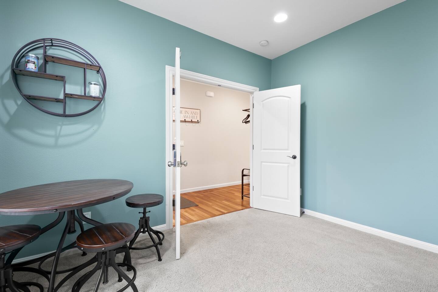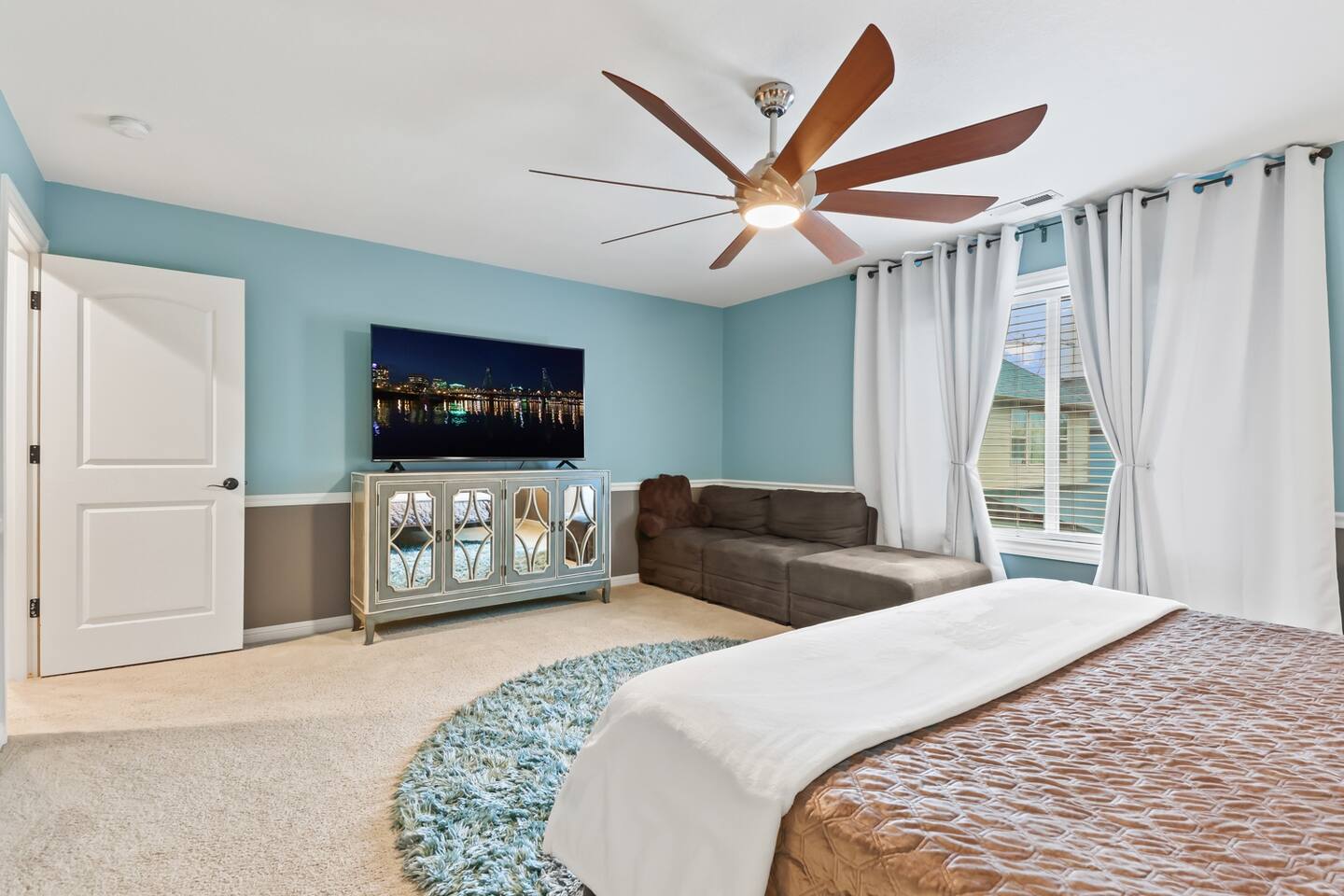 Welcome to our bright and cozy 4-bed, 2.5-bath home perfect for families, groups, or business travelers. With nearly 2,900 sq ft, there’s plenty of room to relax, work, and unwind. Main Floor: Open-concept living, dining, and kitchen area that’s great for gathering. The kitchen opens to a private patio for easy indoor/outdoor living. There’s also a bonus room with an electric sit-stand desk, ideal for remote work or as an extra bedroom if needed. Upstairs: Enjoy a theater and game room — perfect for movie nights or downtime. Three of the four bedrooms are also upstairs. Sleeping Setup: Primary bedroom: King bed with ensuite bath & jacuzzi tub Bedrooms 2 & 3: Queen beds Bedroom 4 / Lounge: Queen pull-out sofa (can be used as a lounge or bedroom) Work-Friendly Amenities: ✔ Electric sit-stand desk ✔ Private work space upstairs ✔ High-speed Wi-Fi ✔ Quiet neighborhood and bright natural light Other Features: ✔ Smart TV ✔ Bounce piano for guests to enjoy ✔ Fully stocked kitchen ✔ Washer & dryer ✔ Fresh towels and essentials Outdoor Space: Private backyard patio with seating — perfect for morning coffee or relaxing in the evenings. Location: Quiet neighborhood close to coffee shops, restaurants, and stores. Only 8.5 miles to downtown Vancouver and 10 miles to PDX Airport — easy access to everything!